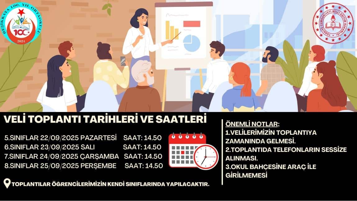VELİ TOPLANTI TARİHLERİBeşikkaya 100. Yıl OrtaokuluOkulumuzda 5, 6, 7 ve 8. sınıf veli...
